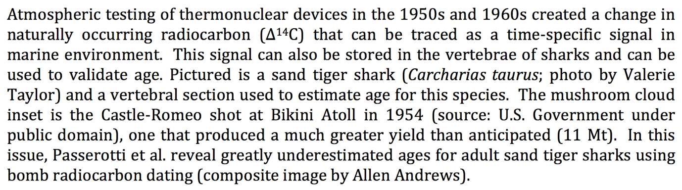 Maximum age and missing time in the vertebrae of sand tiger shark (Carcharias taurus): validated lifespan from bomb radiocarbon dating in the western North Atlantic and southwestern Indian Oceans by M. S. Passerotti, A. H. Andrews, J. K. Carlson, S. P. Wintner, K. J. Goldman and L. J. Natanson